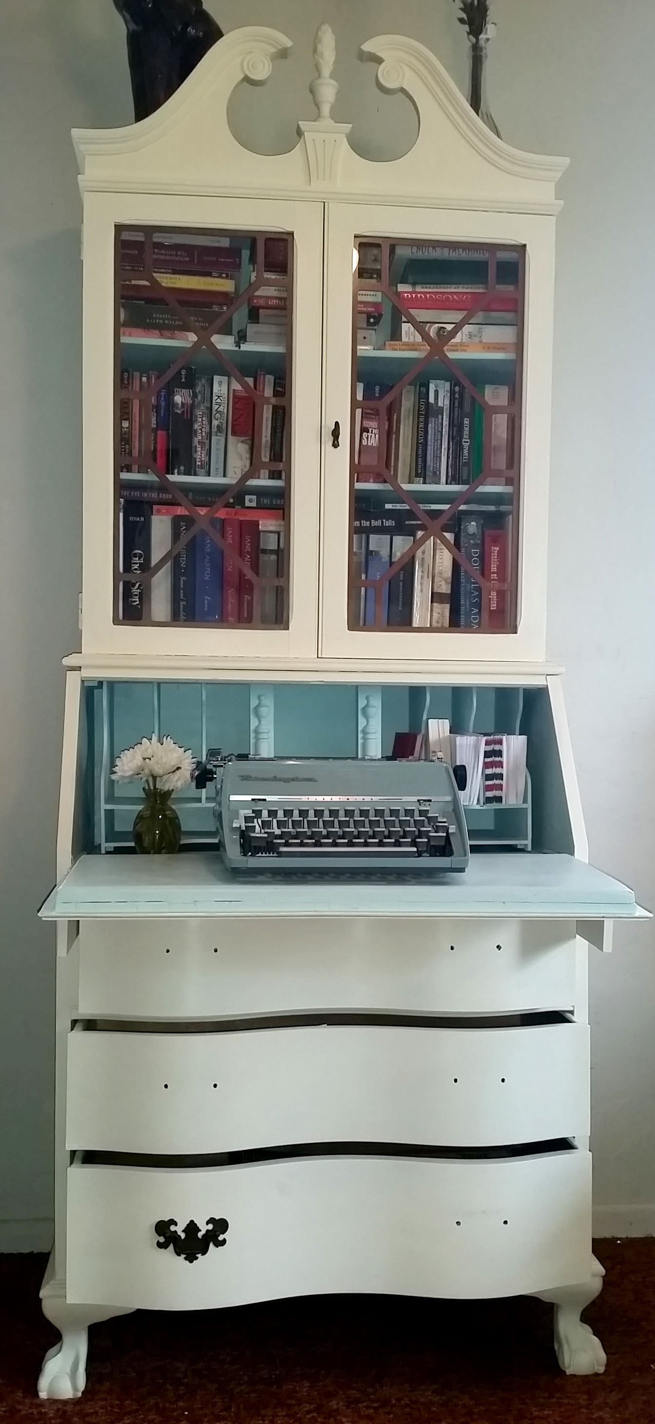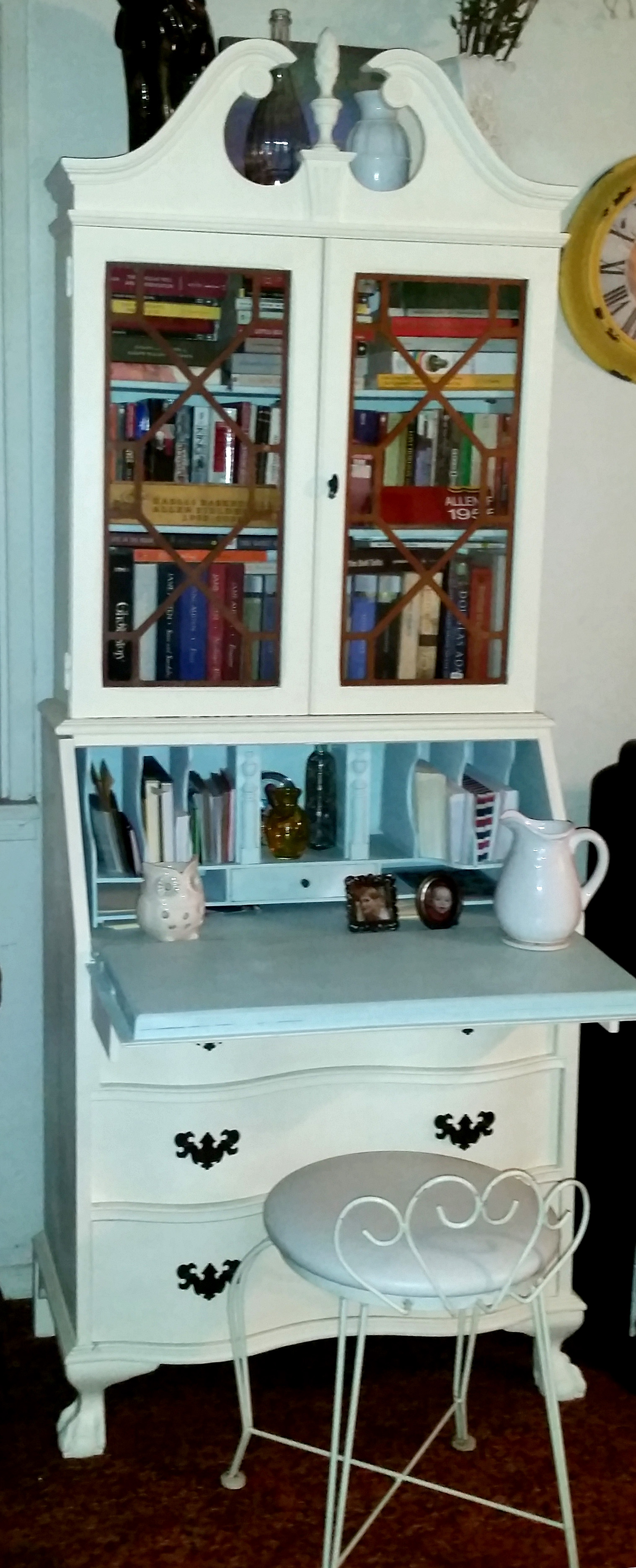 secretary 2Once I get the notion that I want an item, it turns into an unyielding mission that I focus on, probably too much. When the notion arose for a secretary desk, it was no different. I longed for one, preferably one I could paint. However, when the initial search began, my heart quickly dropped upon seeing the average price of one. Whether it was an original, with no work done on it, or one someone had “shabby-chiced,” (I know that’s not a word) the prices were, well, crazy, to be honest. Most I found, online or in person, were $300-600. Cue cartoon me with my eyes popping out of my head and jaw dropping to my feet.