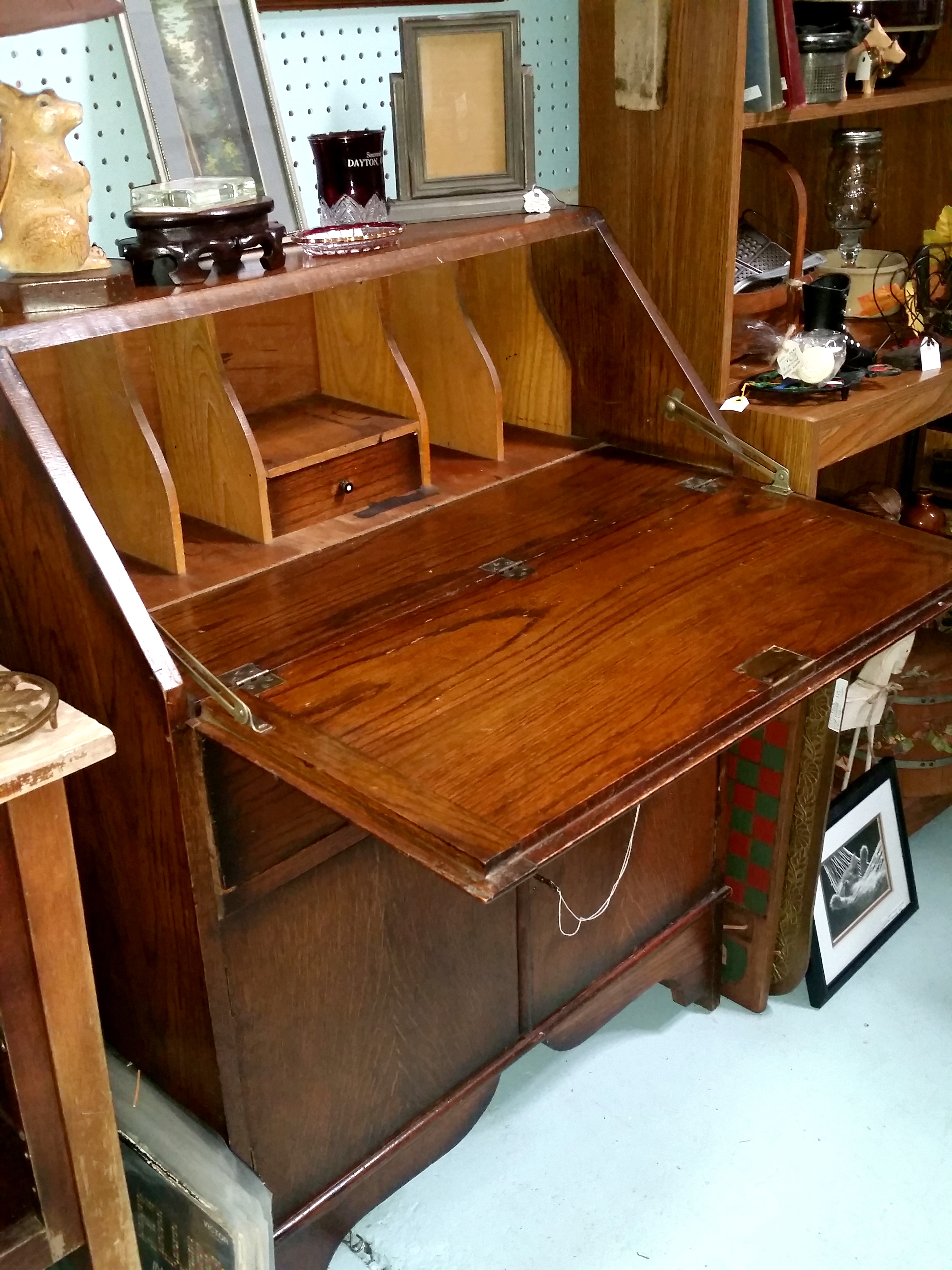Once I get the notion that I want an item, it turns into an unyielding mission that I focus on, probably too much. When the notion arose for a secretary desk, it was no different. I longed for one, preferably one I could paint. However, when the initial search began, my heart quickly dropped upon seeing the average price of one. Whether it was an original, with no work done on it, or one someone had “shabby-chiced,” (I know that’s not a word) the prices were, well, crazy, to be honest. Most I found, online or in person, were $300-600. Cue cartoon me with my eyes popping out of my head and jaw dropping to my feet.